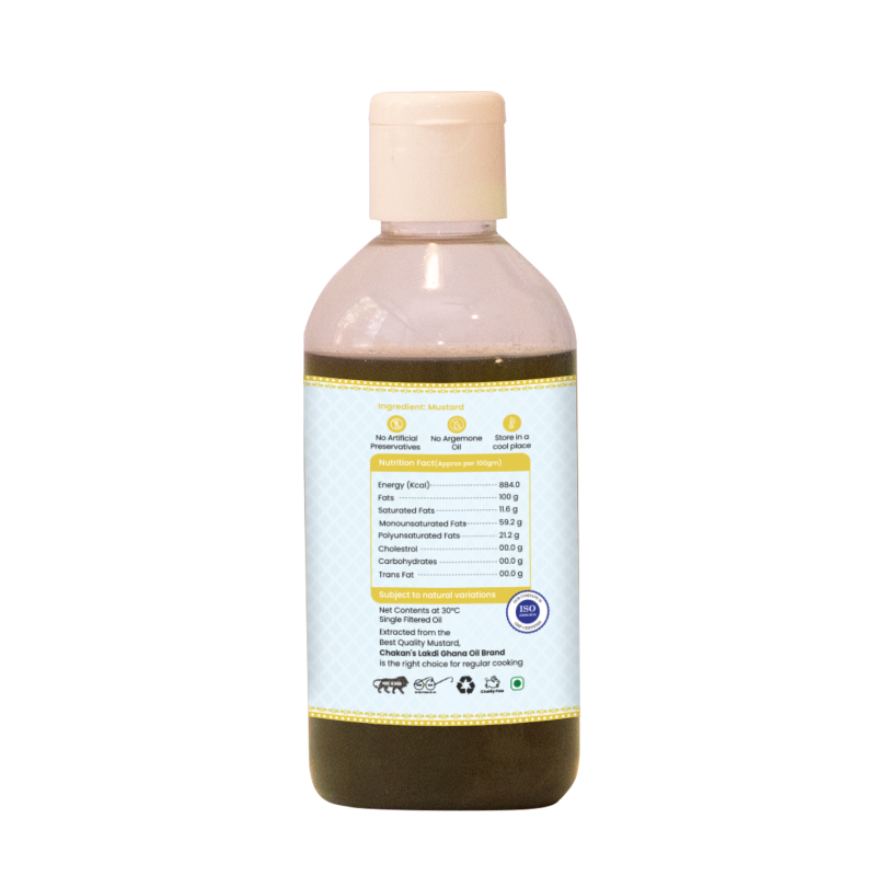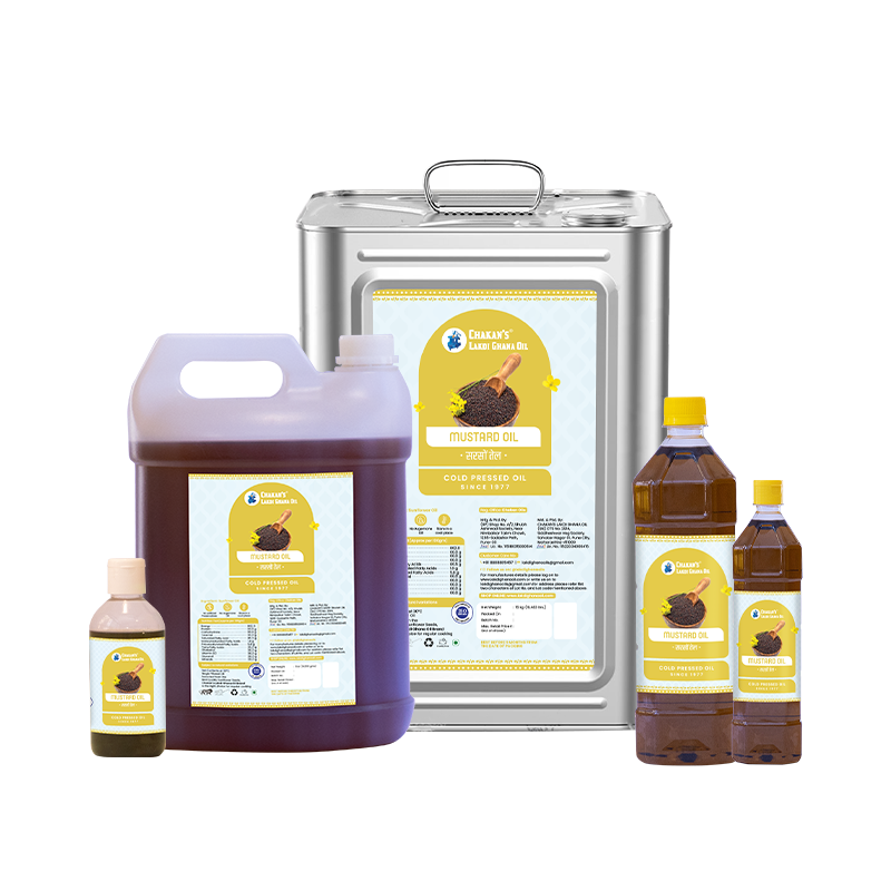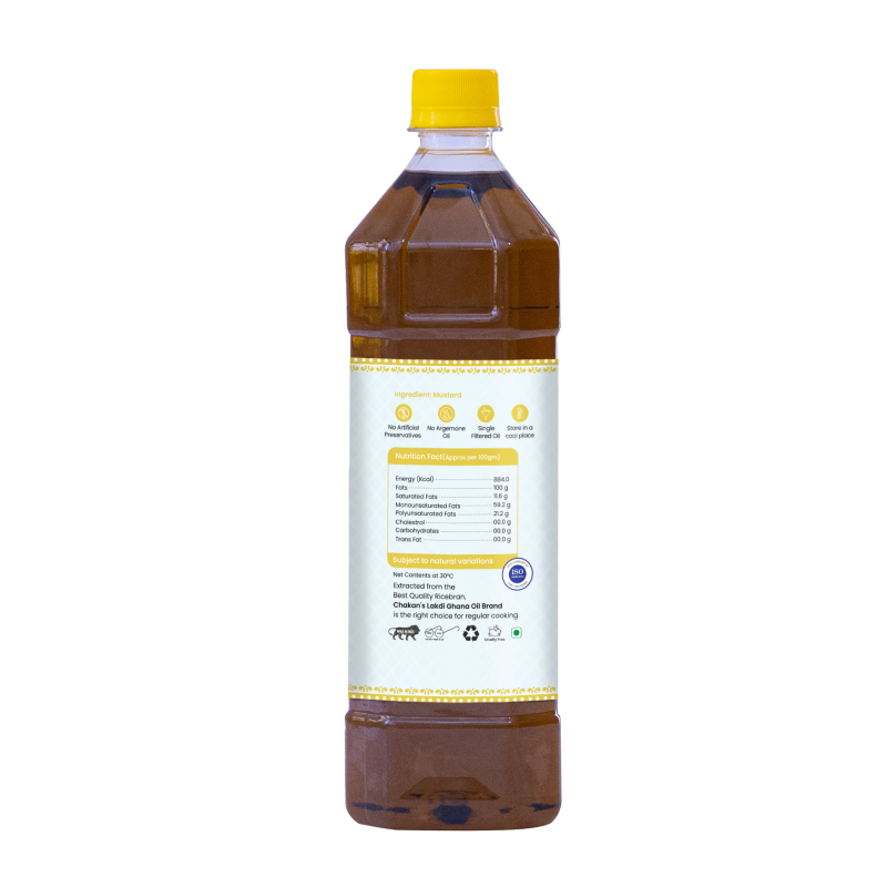 - At Chakan Lakdi Ghana Oils, we take pride in producing premium quality cold-pressed mustard oil that is sourced directly from farmers across India. Our oil is extracted without the use of heat or chemicals, preserving its natural nutrition, flavor, and fragrance and making it organic mustard oil.