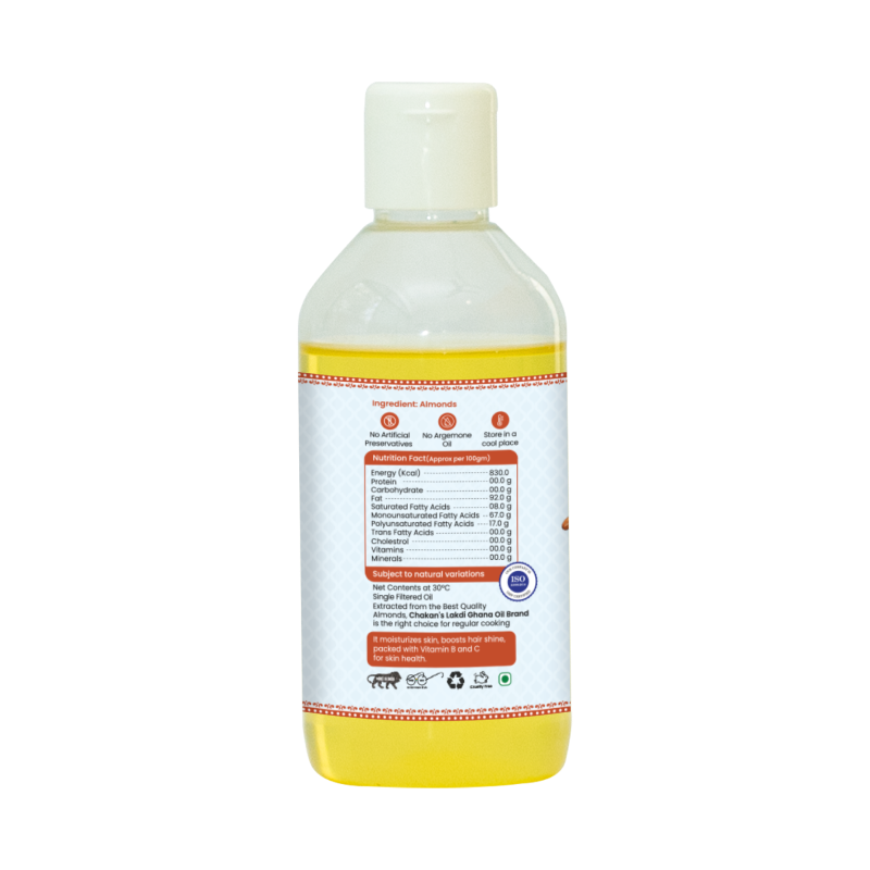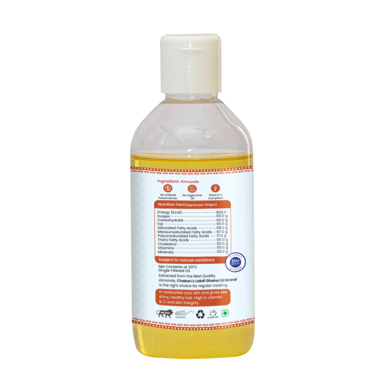 The quality of this almond oil is evident from the moment you open the bottle. It has a pure, clear appearance and a sweet, nutty aroma that signifies its exceptional purity and freshness.